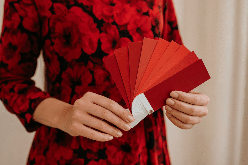 Ha kicsit az évszaktípusok vonalán kalandozunk, az ősz és tél típusú hölgyek különösen ragyognak a megfelelő pirosban: mély, telt, gazdag tónusokban, amelyek a magabiztosságot erősítik. De valójában minden nőben ott él ez az energia – csak meg kell engednünk, hogy megmutatkozzon.