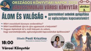 október 11, 2025 @ 13:00 - 17:00Álom és valóság – Gyermekkori sebeink gyógyítása az egészséges kapcsolatokért