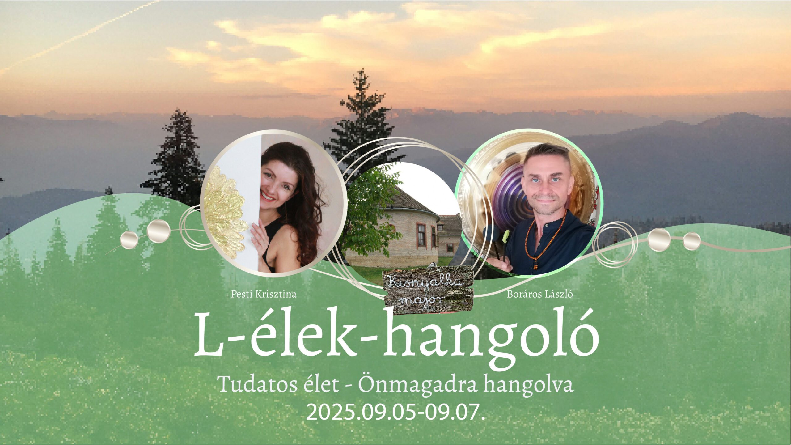 Csatlakozz hozzánk egy különleges, 3 napos elvonulásra, ahol a lélek és a test újrahangolása történik – pszichoedukáció, belső utazás, tudatalatti blokkok oldása, hangfürdő, közös éneklés, kreatív, intuitív alkotás útján, ahogy a belső világod színei megszólalnak.